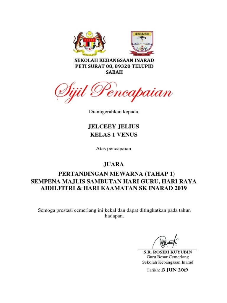 Sekolah kebangsaan felda chemomoi 28310 bandar bera pahang darul makmur sijil penghargaan encik mohd.
